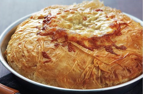 Ψήνουμε σε καλά προθερμασμένο  φούρνο στους 180 C για περίπου 45’ ωσότου κάνει κρούστα και ροδίσουν τα φύλλα.