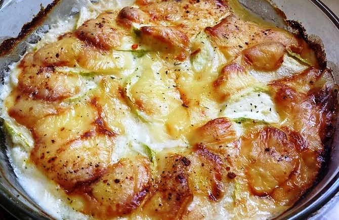 Ζουμερό κολοκυθάκι, που μπορεί επίσης να σερβιριστεί ως ορεκτικό. Η προσθήκη ξινής κρέμας ή γιαουρτιού και τυριού κάνει αυτό το πιάτο πολύ νόστιμο.