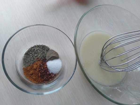 Σε ένα μικρό μπολ, ανακατέψτε μαζί το λάδι, το ξίδι και το αλεύρι. Αφήνω στην άκρη.