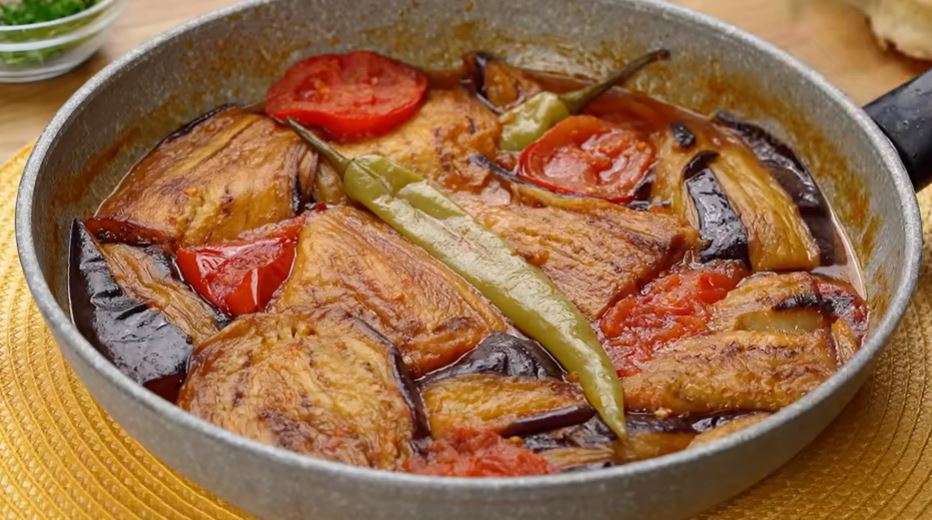 μελιτζανες μελωμενες σε κόκκινη σάλτσα
