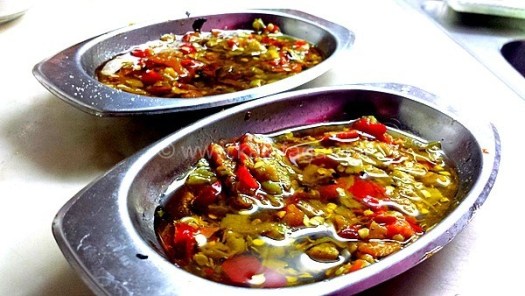 Κόβετε σε μικρά κομμάτια και τοποθετείτε σε ένα μπολ με σκόρδο, ξύδι και το ελαιόλαδο. Προσθέστε αλάτι, ανακατέψτε και σερβίρετε σε ένα ρηχό μπολ και χρησιμοποιήστε κάποιο καλό σπιτικό ψωμί.