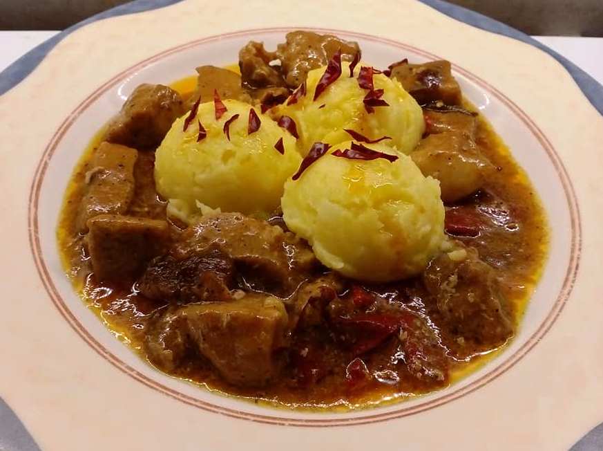 Πικάντικο χοιρινό με χουρμάδες και πουρέ πατάτας