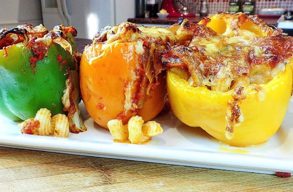 Πιπεριές Γεμιστές με μακαρόνια και τριμμένο τυρί