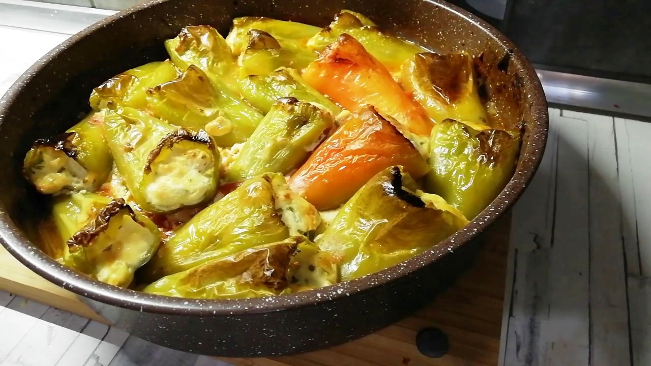 Παίρνουμε κάθε μία πιπεριά και γεμίζουμε με το μείγμα αυγού και την βάζουμε στο ταψάκι