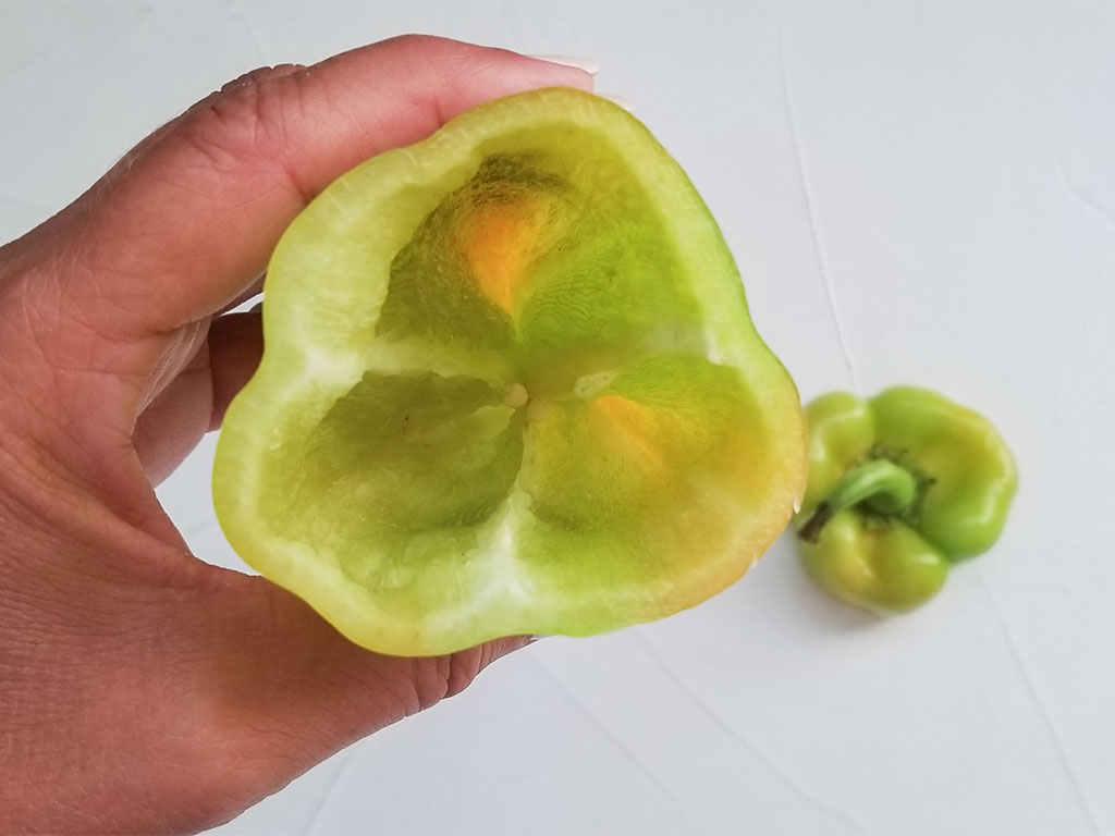Πλένουμε τις πιπεριές, και κόβουμε τα καπάκια (και αφήνουμε στην άκρη) και αφαιρούμε τους σπόρους.