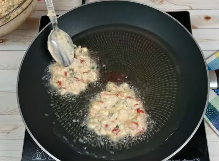 Βάζουμε αρκετο λάδι στο τηγάνι να κάψει και προσθέτουμε 1 κσ μείγμα και τηγανίζουμε.