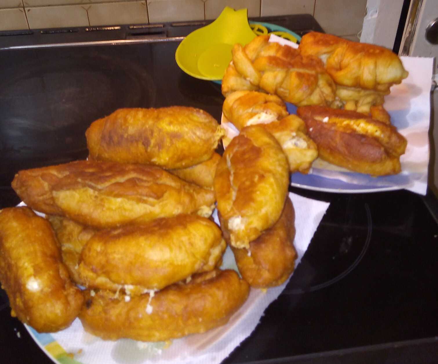 Σε ένα μεγάλο τηγάνι ζεσταίνουμε το λάδι και τηγανίζουμε τα πιροσκί και από τις δύο πλευρές, μέχρι να ροδίσουν.