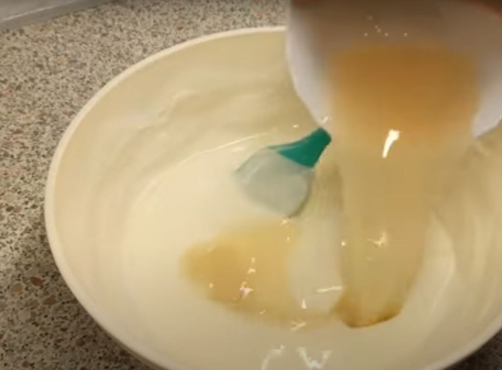 Ρίχνουμε την ζελατίνη μέσα στο μείγμα γιαουρτιού (εάν έχει πήξη την βάζουμε λίγο στο φούρνο μικροκυμάτων) και ανακατευουμε.
