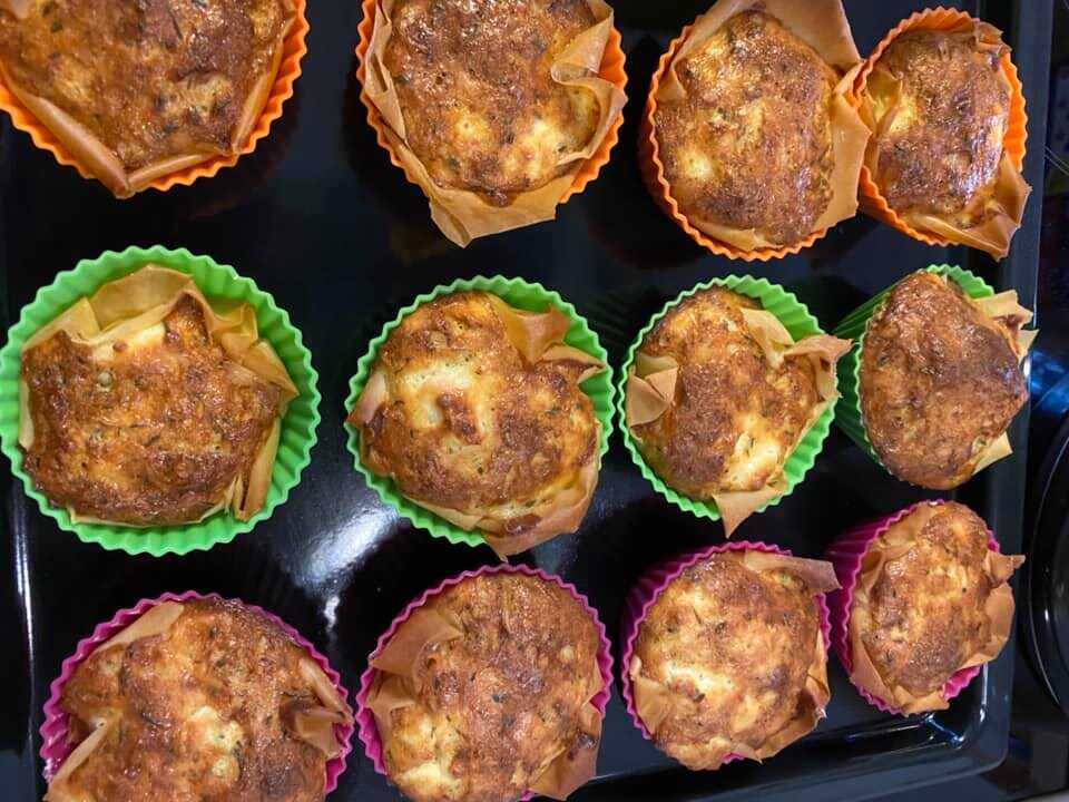 Χτύπησα τα αυγά, στα οποία πρόσθεσα το γάλα και ένα κουταλάκι του γλυκού σόδα, ανάμιξα καλά και πρόσθεσα τυρί και ζαμπον. Στα κουτιά muffin έβαλα 1/4 φύλλα κρούστας ζύμης (διπλωμένο κάπως) και ούτω καθεξής σε 12 κουτιά.