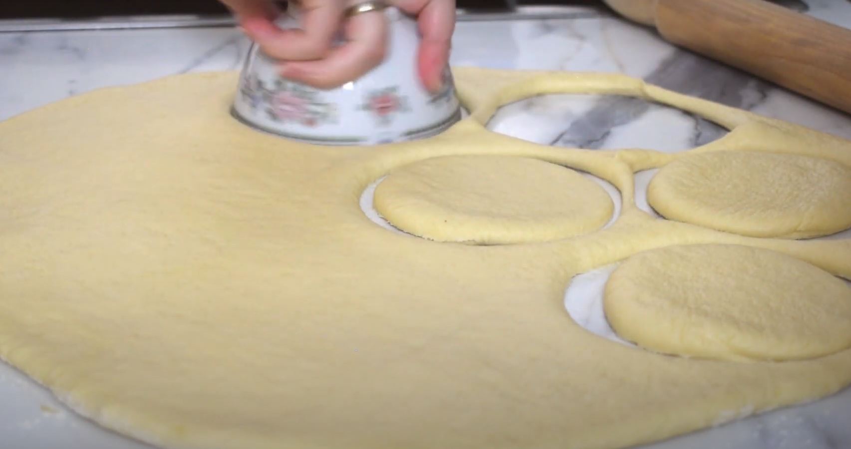 Κόψτε τους κύκλους με ένα κουπ πατ, ένα μπολάκι και στα έτοιμα ταψιά. Ζυμώστε την υπόλοιπη ζύμη, ανοίξτε και κάντε κύκλους μέχρι να εξαντληθεί όλη η ζύμη.