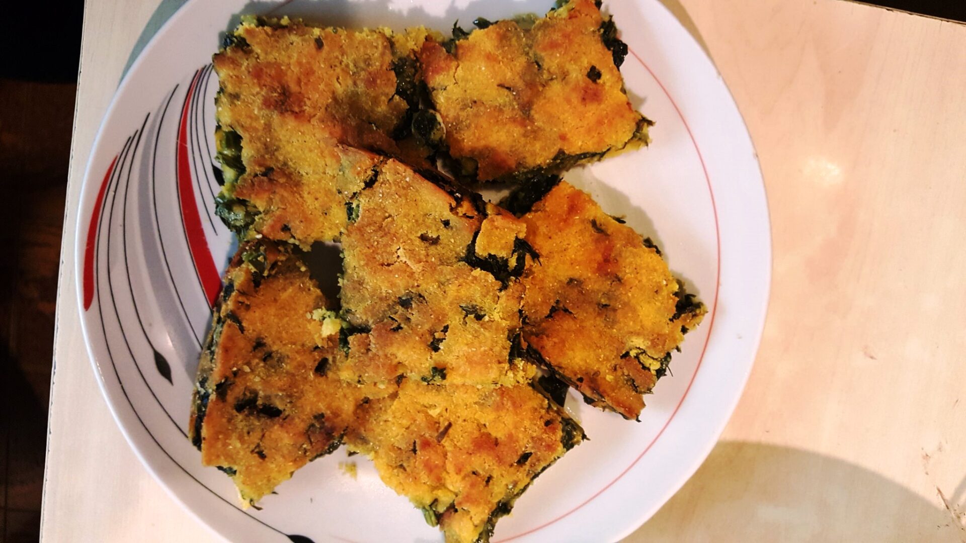 Παίρνουμε τον υπόλοιπο χυλό που έχει περισσέψει, προσθέτουμε νερό για να το κάνουμε πιο αραιό και πιο ρευστό από το αρχικό μίγμα και, αφού το ανακατέψουμε καλά, το ρίχνουμε πάνω από τα χόρτα στρώνοντας το με τα χέρια μας ή με ένα κουτάλι.