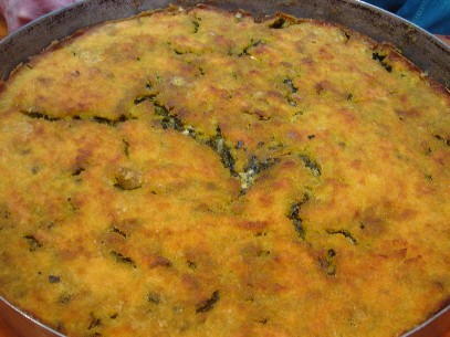 9. Αραιώνουμε την υπόλοιπη ζύμη με το υπόλοιπο γάλα, ώστε να δημιουργηθεί ένας χυλός και τον απλώνουμε πάνω στα χόρτα για να καλυφθούν.