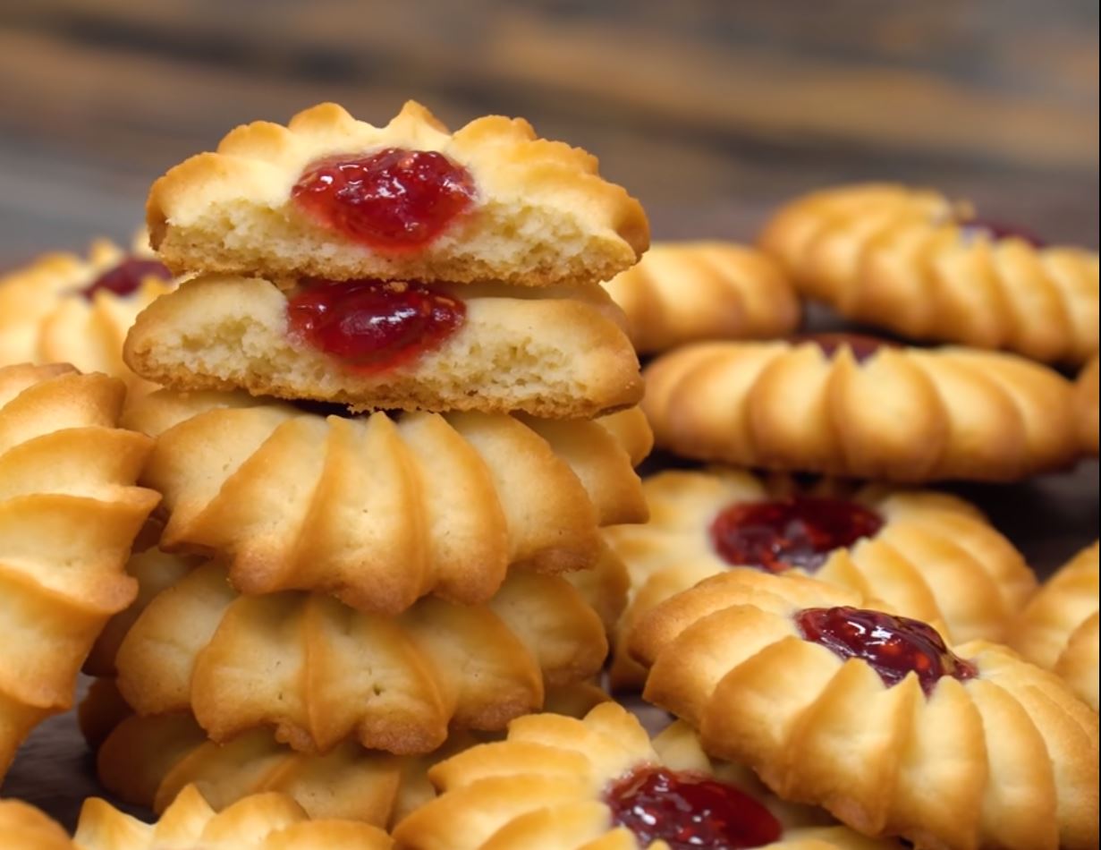 Πιέζουμε το κέντρο κάθε κομματιου με το δαχτυλο και διακοσμούμε με μαρμελάδα επιλογής μας στο κέντρο και ψήνουμε σε προθερμασμένο φούρνο στους 190 βαθμούς για 10-12 λεπτά.
