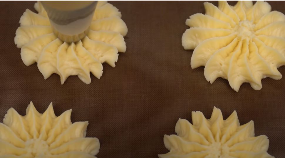 Γεμίζουμε ένα κορνέ ζαχαροπλαστικής το αντίστοιχο πριονωτό στόμιο.