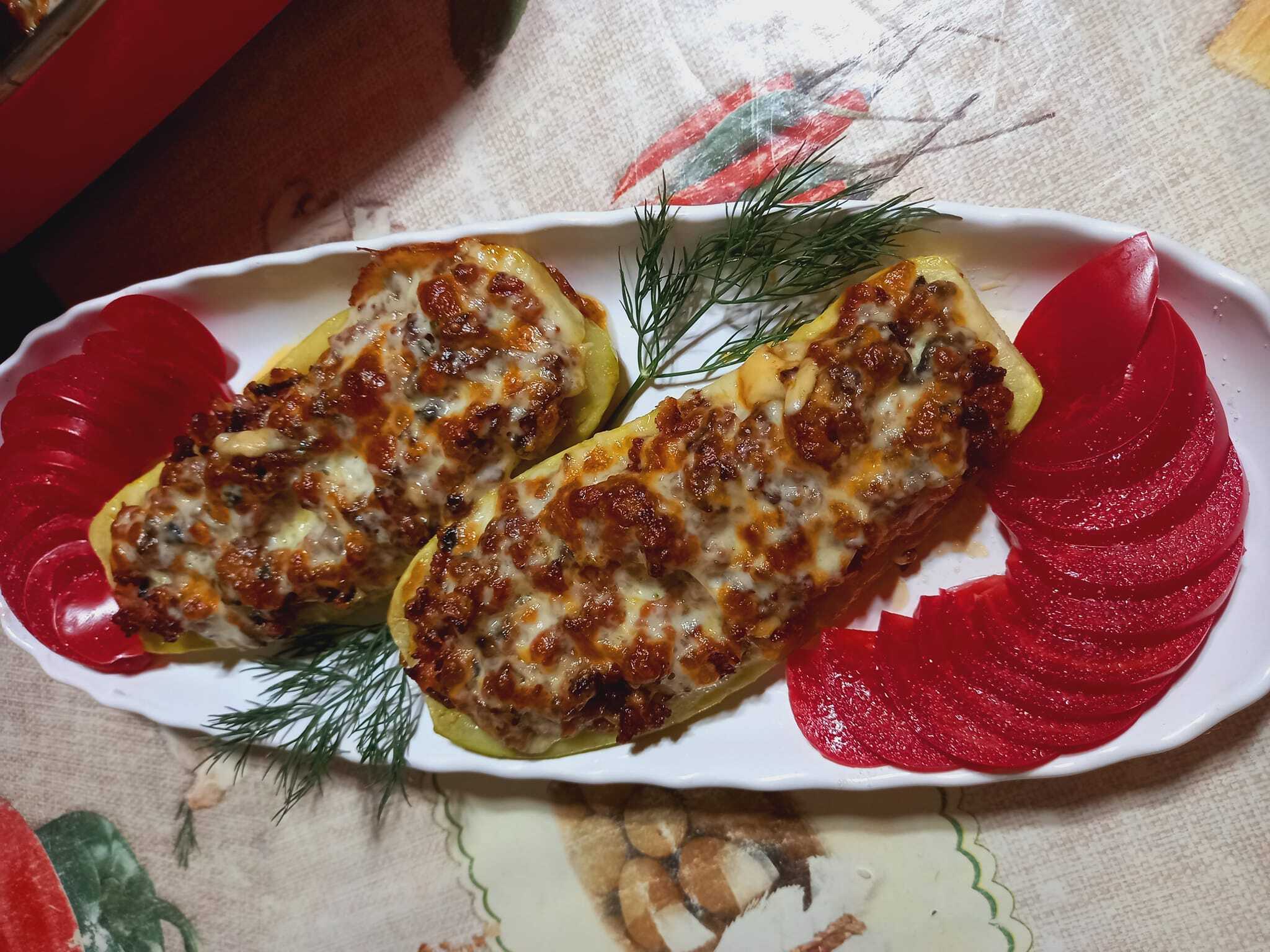 Πολύ νόστιμα τα γεμιστά κολοκυθάκια με κιμά και μανιτάρια.