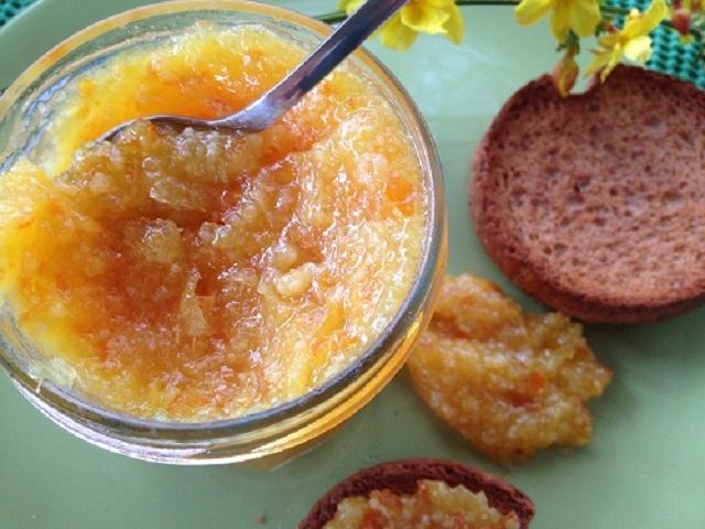 Όσο ετοιμάζουμε τη μαρμελάδα αποστειρώνουμε τα βάζα και τα καπάκια. Όπως είναι ζεστά τα γεμίζουμε με τη ζεστή μαρμελάδα τα κλείνουμε καλά και τα γυρίζουμε ανάποδα μέχρι να κρυώσουν. Αποθηκεύουμε σε δροσερό, σκοτεινό ντουλάπι. Όταν ανοίξουμε το βάζο συντηρούμε τη μαρμελάδα στο ψυγείο.