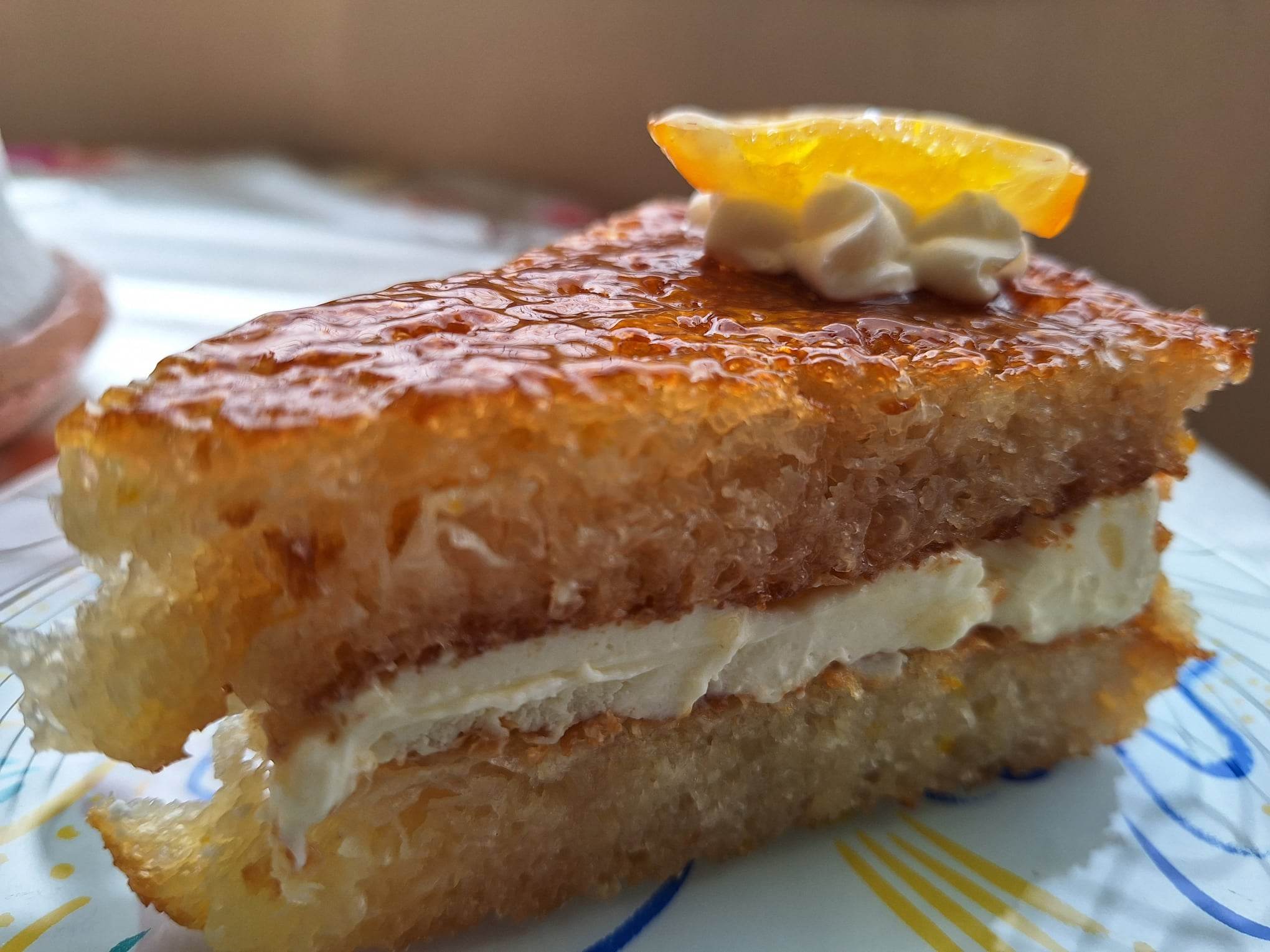 Αφήστε χρόνο να απορροφηθεί το σιρόπι καλά και να κρυώσει. Στο χρόνο αυτό φτιάξτε την κρέμα