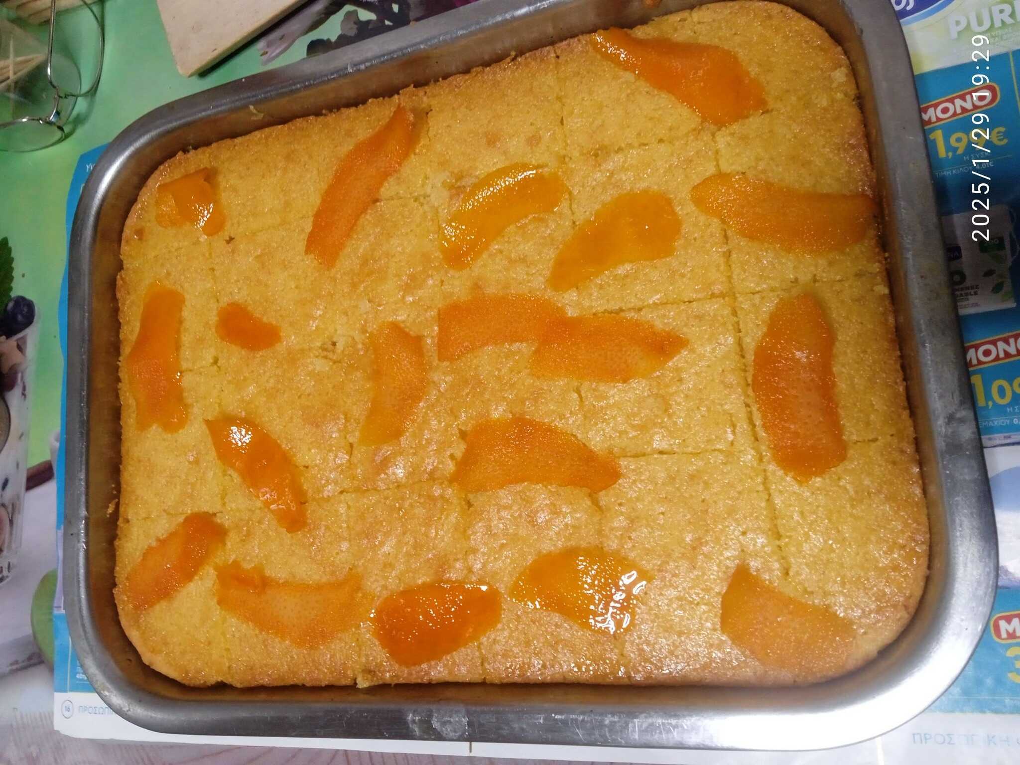 Μόλις το κέικ ψηθεί, το αφήνω να κρυώσει λίγο και το κόβω σε τεμάχια.