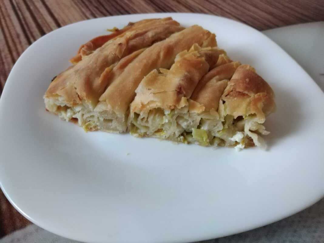 Η πίτα ψήνεται στους 190 βαθμούς για 30-35 λεπτά μέχρι να πάρει ένα ωραίο χρυσαφί χρώμα. Από τα παραπάνω υλικα βγαίνουν δύο πίτες αν τις πλάσετε σε ταψιά 30 εκ.