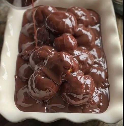 Σερβίρουμε αμέσως για να απολαύσουμε τα τραγανά σου με την ζεστή σάλτσα, ή τα βάζουμε στο ψυγείο για λίγο αν προτιμάμε ένα πιο δροσερό γλυκό.