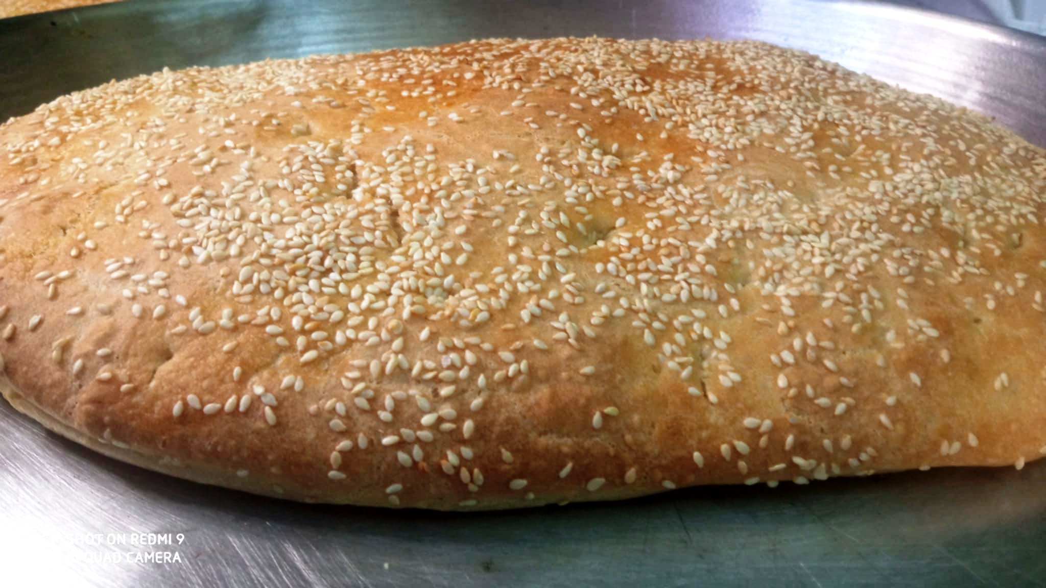 Πασπαλίστε με σουσάμι και με βρεγμένα δάχτυλα αφου την αφησετε άλλα 20-30 λεπτα, κάντε τις χαρακτηριστικές δαχτυλιές στην επιφάνεια της λαγάνας.