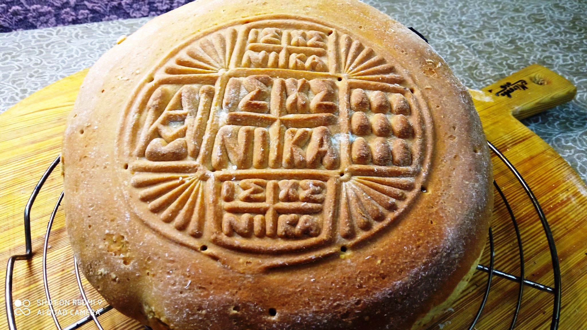 απλώνουμε αλευρι (για να μην κολλησει η σφραγιδα )στην επιφάνεια του πρόσφορου αλευρι και πιέστε καλα τη σφραγίδα στο πρόσφορο.