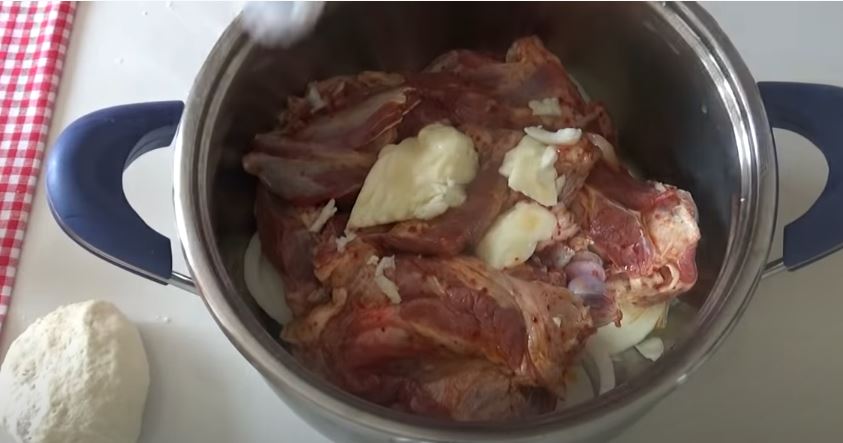 Βάζουμε το κρέας στην κατσαρόλα ρίχνουμε το βούτυρο