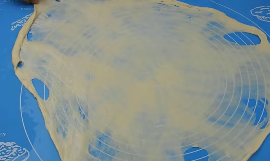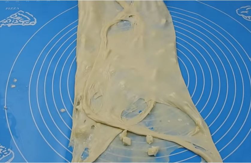 και συνεχίζουμε να την τραβάμε με τα χέρια να γίνει ένα λεπτό φύλλο (δεν πειράζει εάν σκίζετε).