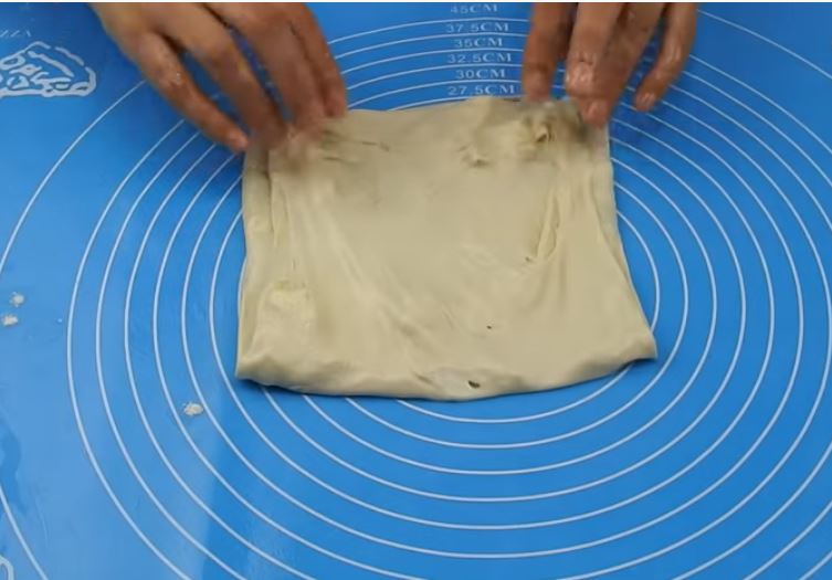 Μόλις πάρουμε μια συνοχή ζύμης ζυμώνουμε μέχρι να πάρουμε μια μαλακή ζύμη που δεν κολλάει στα χέρια.
