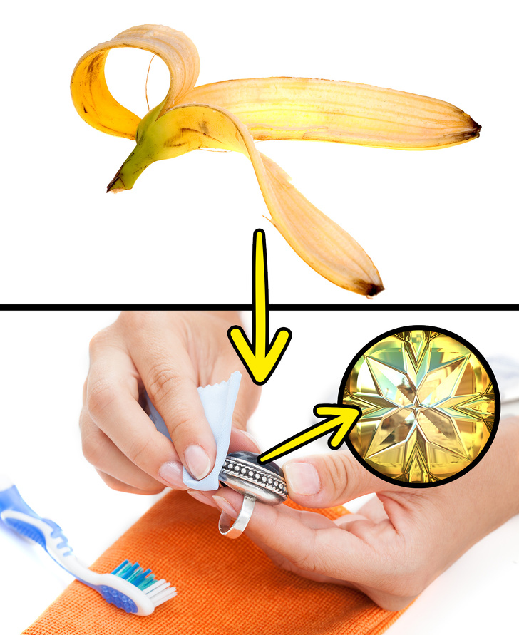 Βάλτε τις φλούδες σε ένα μπλέντερ. Προσθέστε μισή κούπα νερό και ανακατέψτε μέχρι να γίνει μία πάστα. Τρίψτε τα ασημικά σας με την πάστα για μερικά λεπτά.