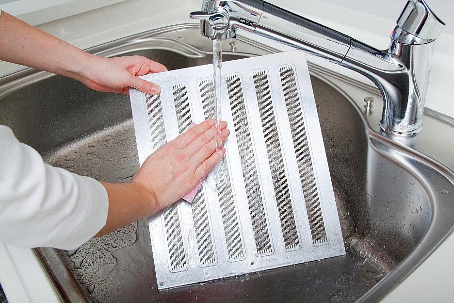 Ξέπλυνε και στέγνωσε: Ξέπλυνε καλά τα φίλτρα και άφησέ τα να στεγνώσουν καλά πριν τα ξαναβάλεις στον απορροφητήρα.