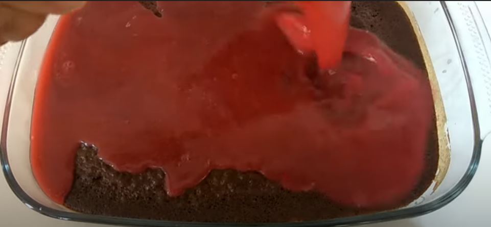 Στραγγίζουμε το υγρό απο την κατσαρόλα και περιχύνουμε την βάση