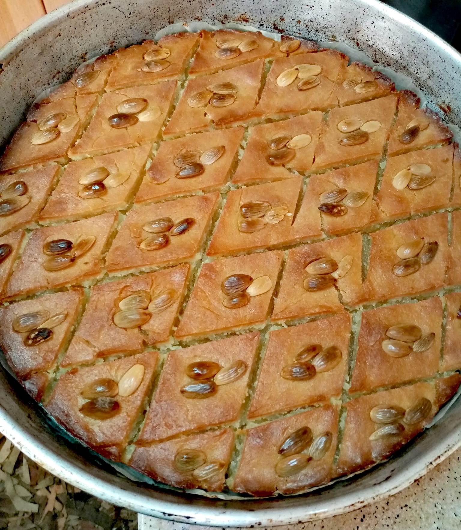 Μόλις βγαλω το ραβανί από το φούρνο (τσεκαρω πριν με μαχαιράκι) και όπως είναι καυτό θα το σιροπιάσω με το κρύο σιρόπι. Σιροπιάζω σίγα σιγά να πιεί όλο το σιρόπι και το αφήνουμε να κρυωσει εντελως ισως και μεχρι την άλλη μερα