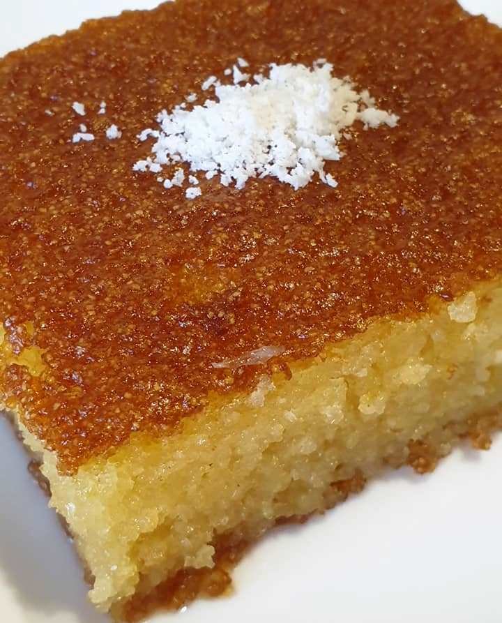 Αρχικά χτυπάμε τα αυγά με τη ζάχαρη μέχρι να ασπρίσουν. Προσθέτουμε το λάδι, το γάλα και συνεχίζουμε το ανακάτεμα. Στη συνέχεια αλευρώνουμε με μαγειρική σόδα, ψιλοτριμμένα καρύδια και σιμιγδάλι. Βάζουμε σε ταψί και ψήνουμε σε προθερμασμένο φούρνο – 170C για 45 λεπτά περίπου.
