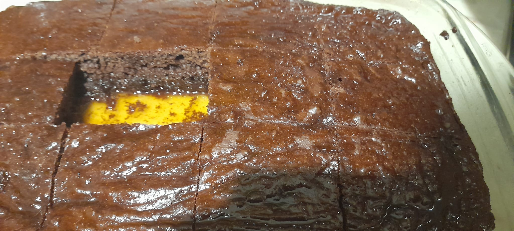 Οταν βγει σπο το φουρνο περιχυνουμε με σιροπι κρυο . Αφου απορροφησει το σιροπι κοβουμε σε κομματια κ σερβιρουμε.