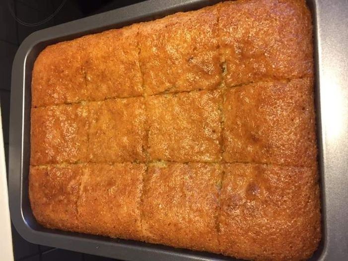 Μόλις βγει το ρεβανί από τον φούρνο αφήνω 2-3 ‘ και ρίχνω το σιρόπι. Στην αρχή θα σας φανεί να επιπλέει … αλλά σιγά σιγά θα το πιει όλο και θα είναι σιροπιασμενο μέχρι επάνω….
