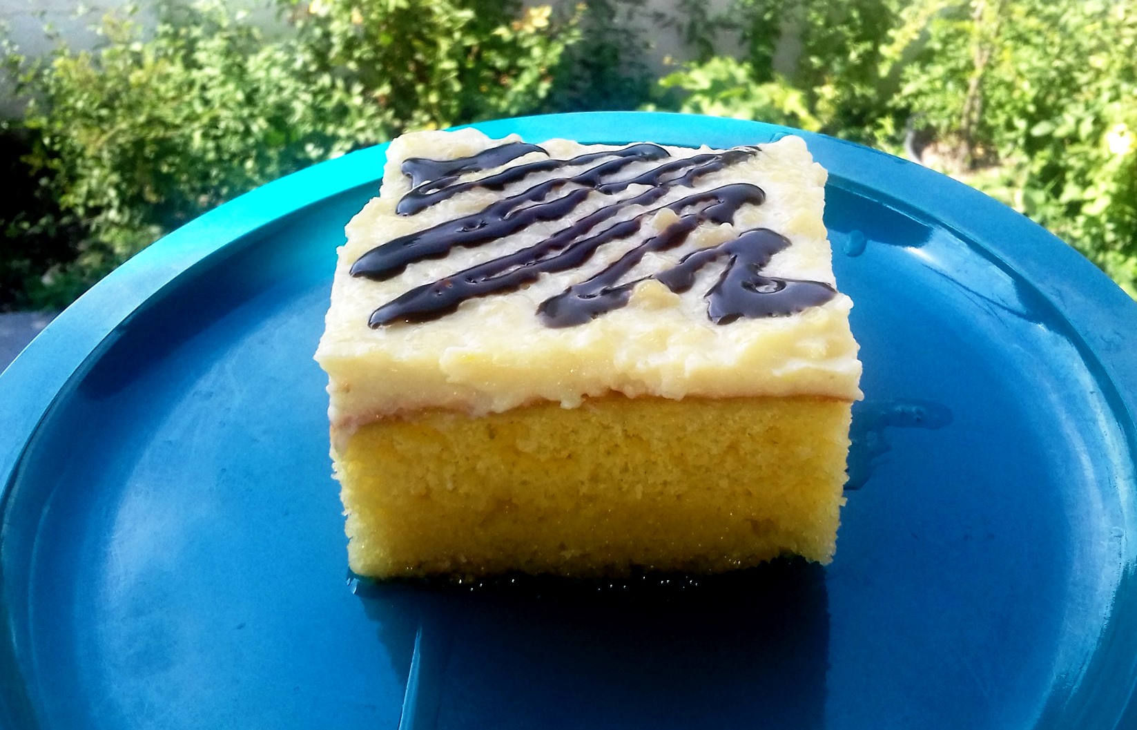 Αφού ψηθεί το σιροπιάζουμε ζεστό το γλυκό κρύο το σιρόπι.