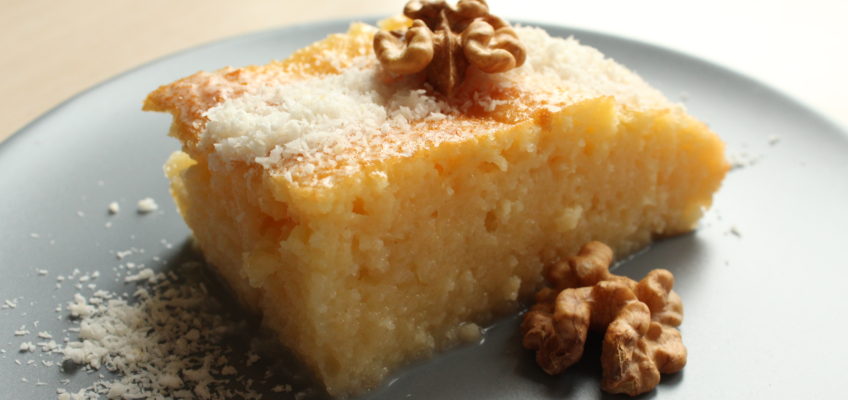 Έτοιμο να σερβίρετε, γαρνιρισμένο με νιφάδες καρύδας και καρύδι