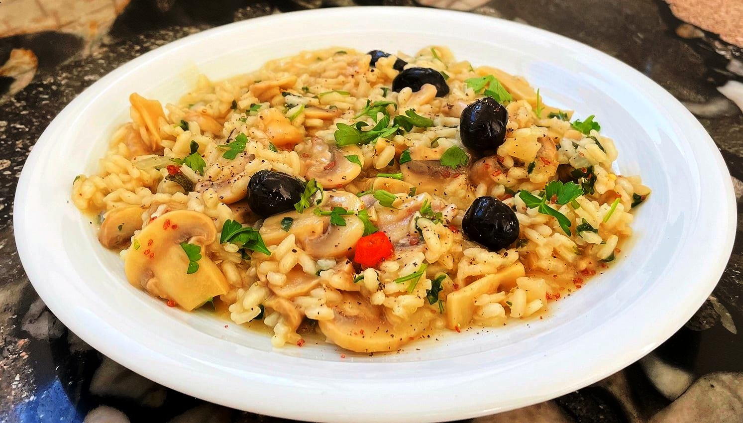 Μετά προσθέτουμε το ρύζι και το ψήνουμε για περίπου 2 λεπτά