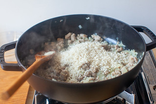 Προσθέστε το ρύζι μαγειρέψτε, ανακατεύοντας 1 έως 2 λεπτά.