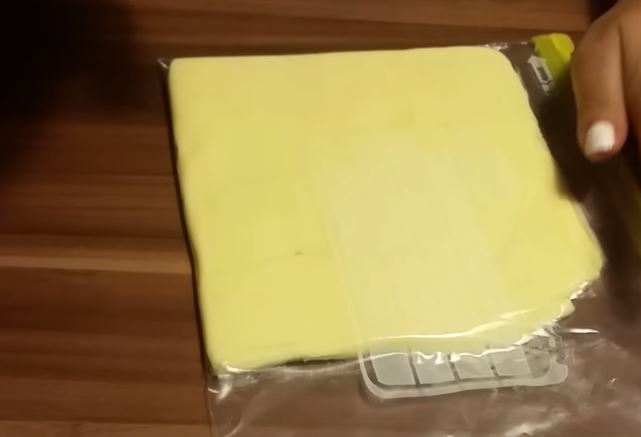 Μέσα μία σακούλα βάζουμε το βούτυρο και με τον πλαστη το κάνουμε μια πλακα και το βάζουμε στην καταψυξη να παγώσει