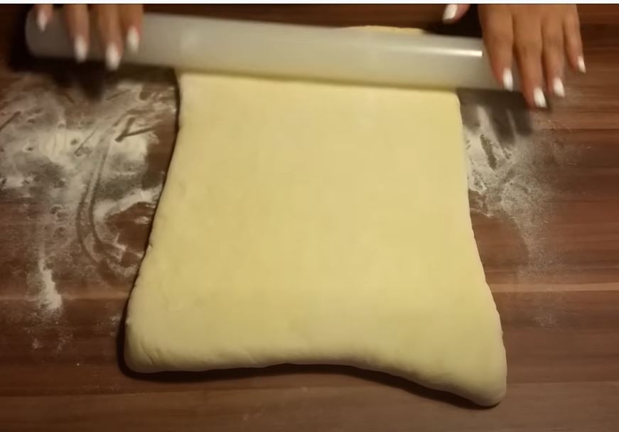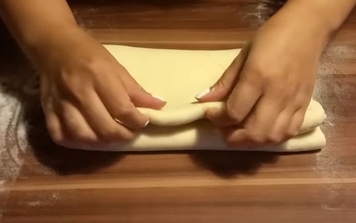 Με ένα χοντρο πλάστη και λίγο αλεύρι τον ανοίγουμε λίγο και το διπλώνουμε όπως στην φωτό