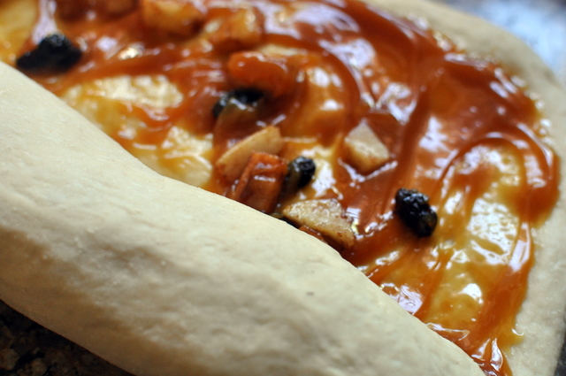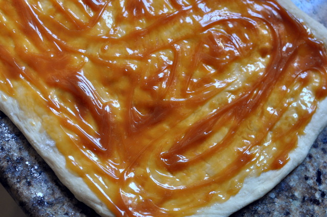 Απλώστε τη καραμέλα πάνω από τη ζύμη.