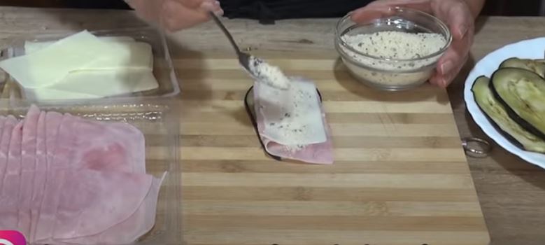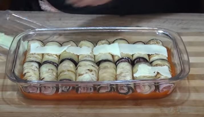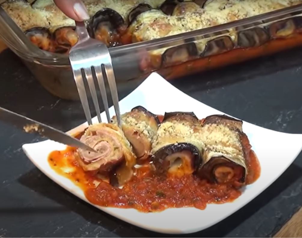 Ρολά μελιτζάνας με ζαμπόν και τυρί