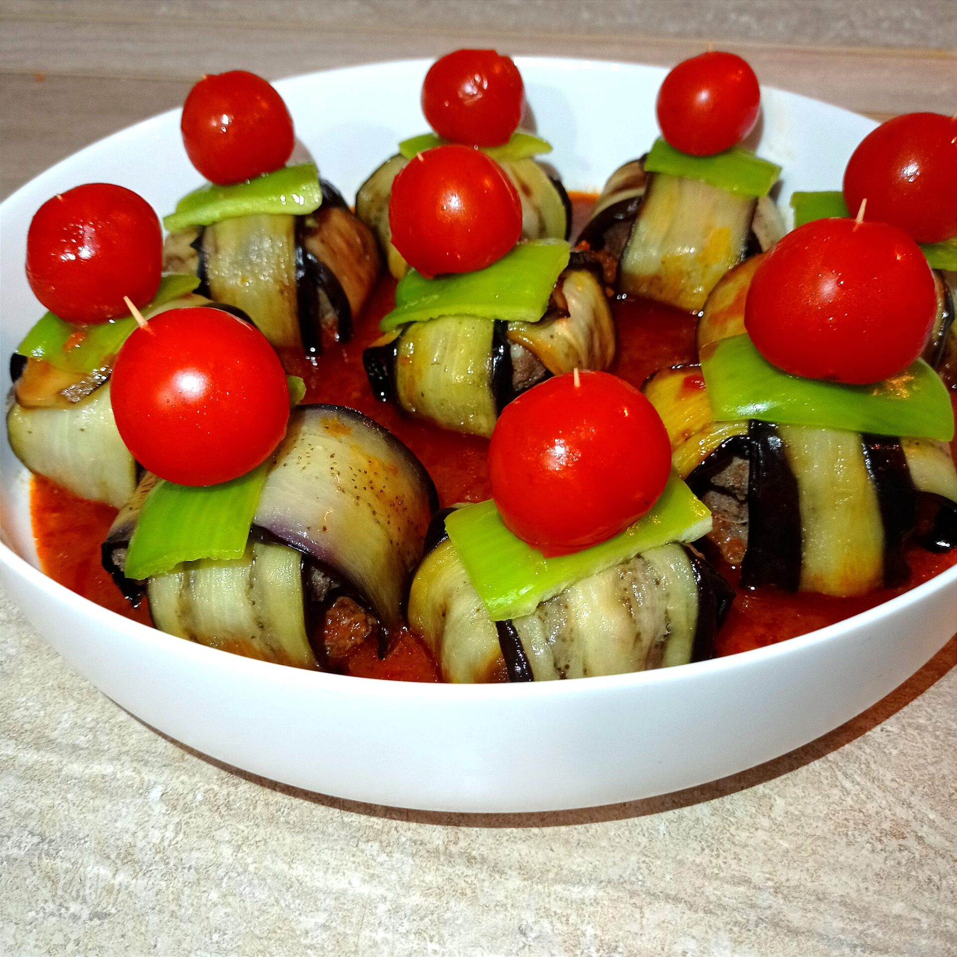 Ρολάκια Μελιτζάνας με κεφτέδες