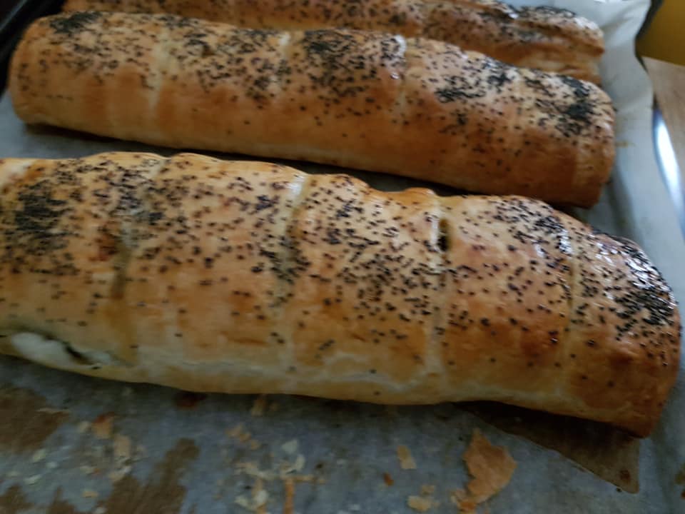 Τοποθετήστε τα ρολά με την ραφή προς τα κάτω, σε μεγάλους δίσκους φούρνου με ελαφρά λαδωμένο και στρωμένο με χαρτί ψησίματος. Κόψτε κάθε ρολό σε 8 μικρότερα ρολά, βουρτσίστε με αυγό, πασπαλίζετε με σπόρους παπαρούνας και μαγειρεύετε για 20 λεπτά.