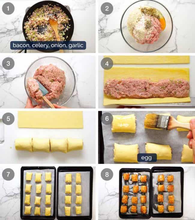 Ρολάκια σφολιάτας με μπέικον και κιμά