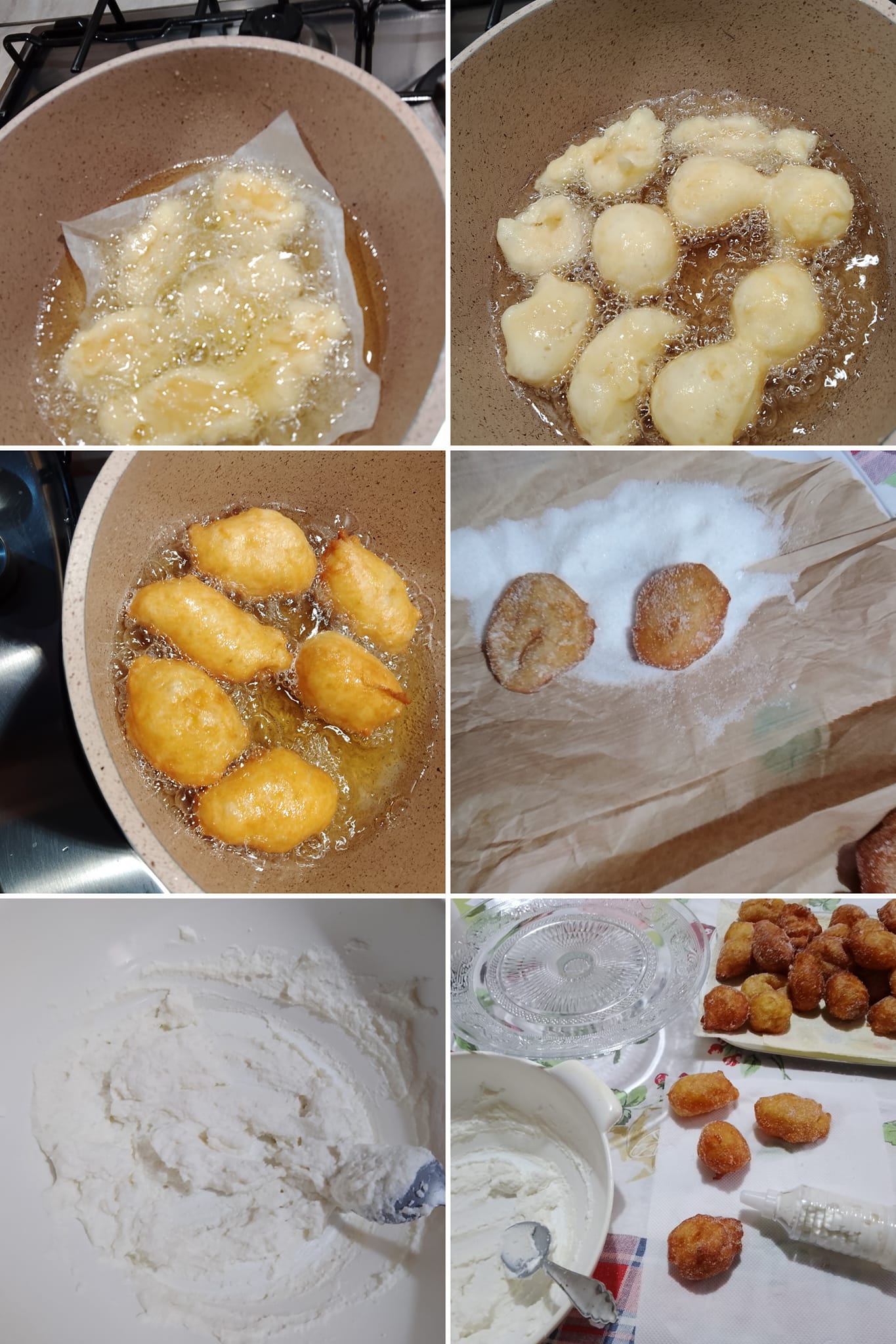 Κλείστε καλά τα μπαλάκια για να μην βγει η κρέμα κατά το τηγάνισμα.
