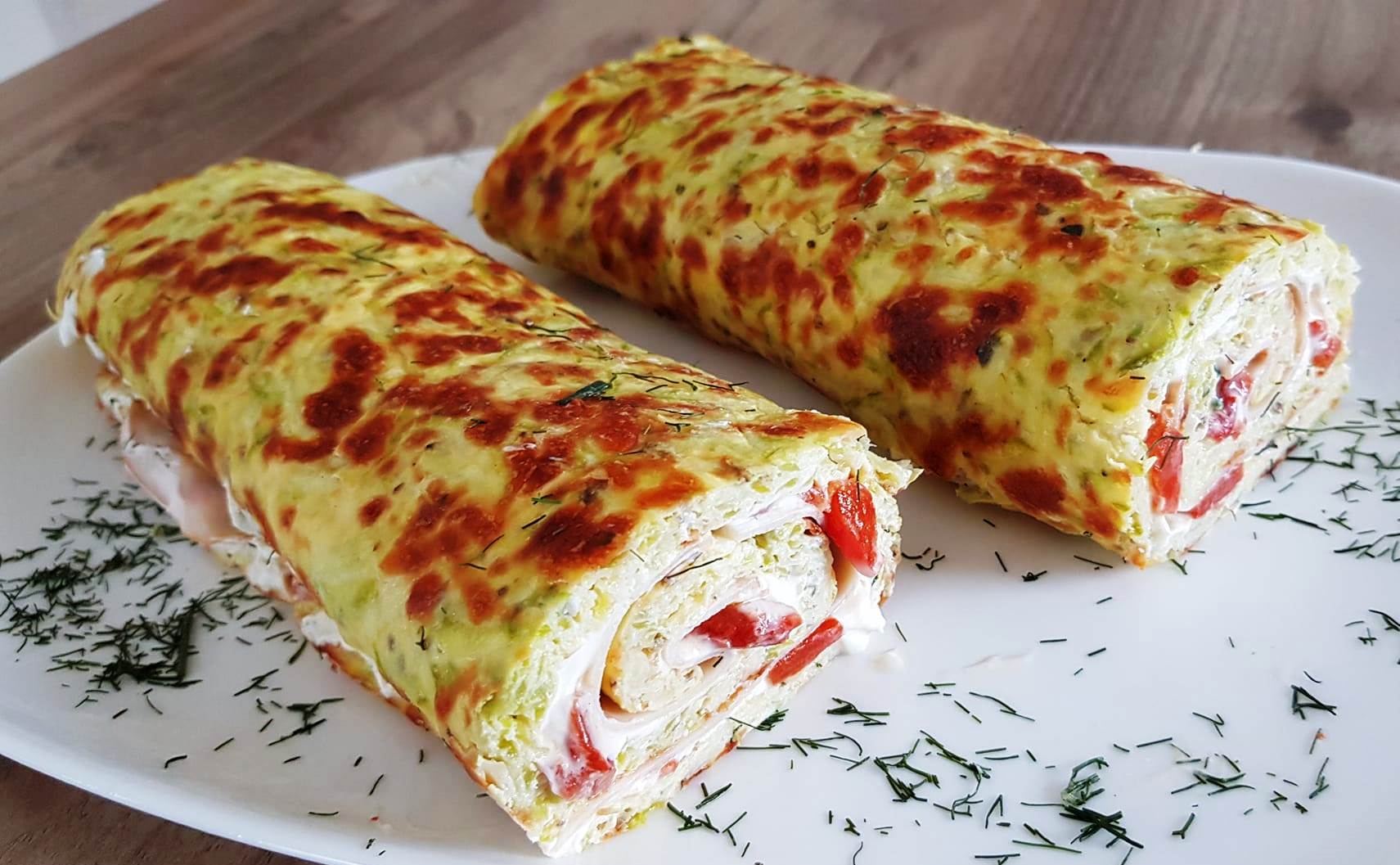 Ψήνουμε σε προθερμασμένο φούρνο στα 220 γρ για 20-30 λεπτά περίπου.Το ψημένο φύλλο όσο είναι ακόμα ζεστό αναποδογυρίζουμε σε άλλο χαρτί (ή πετσέτα). Ετοιμάζουμε τη γέμιση και απλώνουμε στο κρυωμένο φύλλο.σε σφιχτό τυλίγουμε και αφήνουμε στο ψυγείο