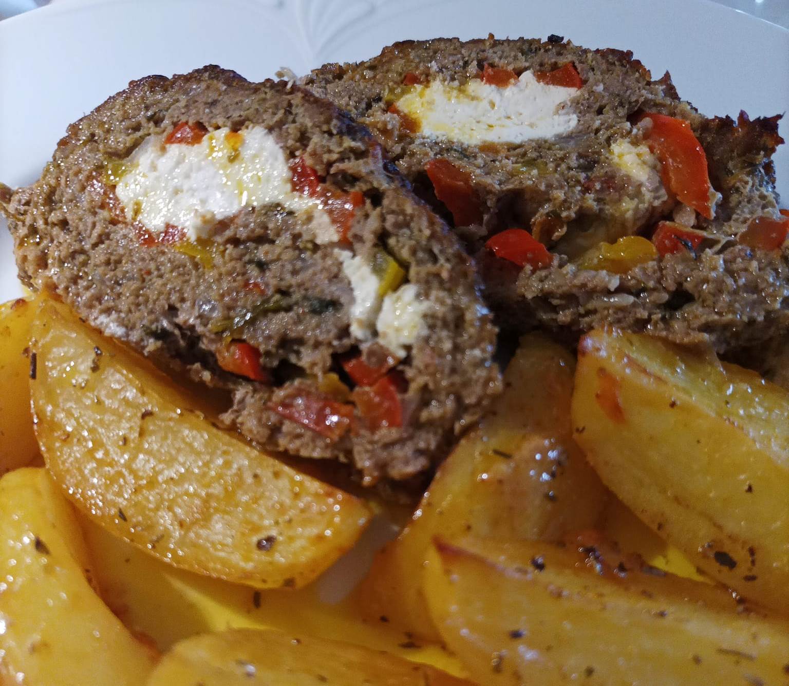 Ρολό με κιμά γεμιστό με φέτα και πατάτες στο φούρνο